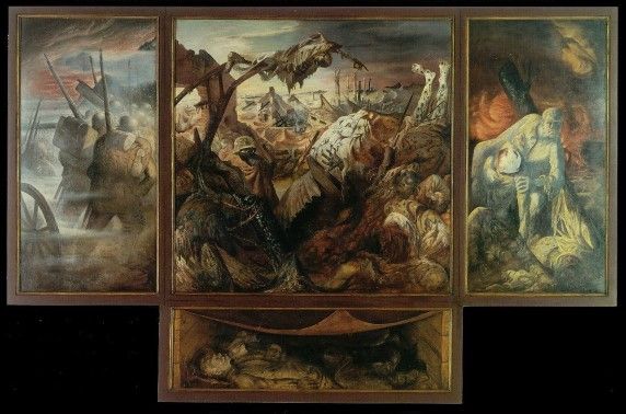 Nu er niemand meer is die het nog kan navertellen wisten gelukkig een aantal kunstenaars de gruwel op de slagvelden van de Eerste Wereldoorlog te overleven om ons uit eerste hand met de trauma’s die zij er hadden opgedaan te confronteren... Eén deze toptalenten was de Duitse expressionist en pacifist OTTO DIX (klik) (1891-1969) die zich als gevolg daarvan als maatschappijkritiek samen met o.a. GEORGE GROSZ (klik) (1893-1959) bij de DADA-beweging (klik) aansloot...