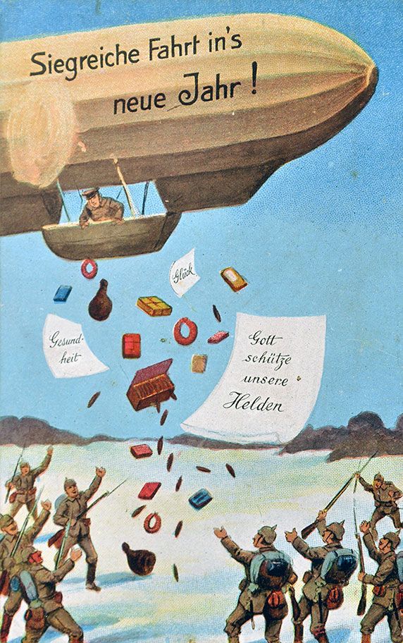 In Duitsland werd Kerst intensiever gevierd en ontvingen ook soldaten aan het front wenskaarten - weliswaar met een nogal dikke propaganda-saus om hen een riem-onder-het-hart-onder-de-riem te steken...