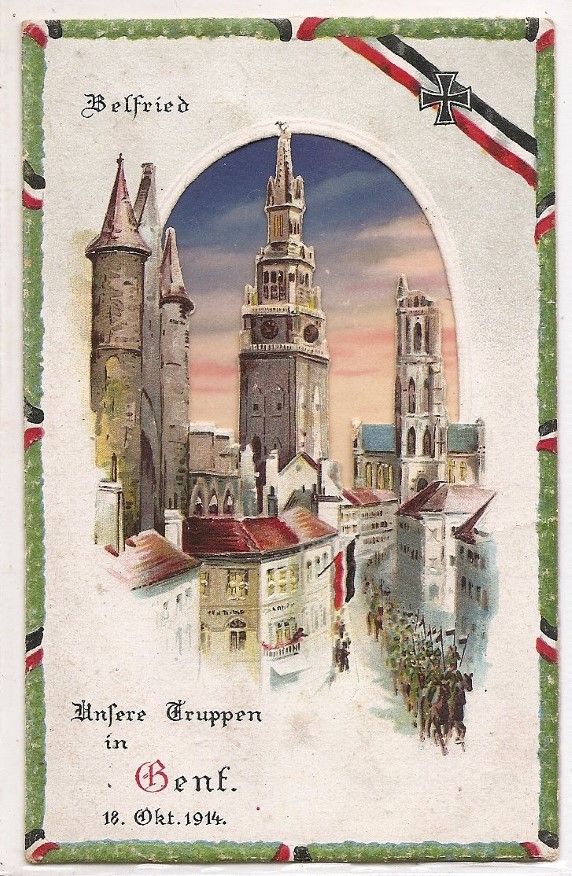 De Duitse invaller gaf zelfs ter gelegenheid van dit 'heugelijke' feit een (zeldzaam geworden) luxueuze 'feestpostkaart' uit: "Unsere Truppen in Gent - 18 Okt. 1914" ... Deze was in reliëf en durchsichtig uitgevoerd - iets uitzonderlijk! - want als je ze in het licht hield zag je een zonsopgang boven de beroemde 3 torens! Dat het jaar daarvoor in 1913 Duitsland - blijkbaar met succes - nog had deelgenomen aan de Wereldtentoonstelling aldaar en er dus goede herinneringen aan had, zal er veel toe bijgedragen hebben. Vóór het begin van de oorlog waren de Duitsers - vooral de Duitsche Pilsner zelfs de hype in Gent - dat zou met de gebeurtenissen van 1914 snel omslaan...