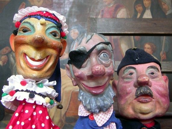 Dat zijn heel wat poppen... Sommige wat verweerd, andere nog fris in de lak. Handpoppen en marionetten, te veel op op te noemen. En dat die achtergrondschildereingen. Die zijn ook de moeite van het bekijken waard. Mooi reeks weer deze keer.