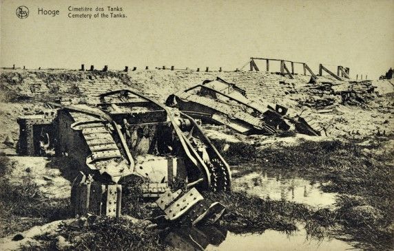 Op het slagveld rond Ieper na de ‘Groote Oorlog’ telde Vlaanderen in de jaren 1920-1930 nog tientallen tankwrakken die destijds bekende toeristenattracties waren - o.a. te Ieper zelf, en op het grondgebied van Zillebeke-Hooge (waar talrijke kapotgeschoten tanks het bekende ‘tankkerkhof' vormden) en te Langemark-Poelkapelle (zie foto’s) - niet te missen rustpunten voor de toeristen die per fiets of auto (voor wie het kon betalen) naar zee trokken. Zij verdwenen allemaal als ‘oud ijzer’ bij het begin van de Tweede Wereldoorlog. Het laatste exemplaar stond in het centrum van Poelkapelle-Statiestraat maar is door de Duitsers in 1941 verwijderd. Slechts in oktober 2009 is er op die plaats een monument(je) onthult voor de 243 Engelse soldaten van het Tank-corps die in de Slag om Ieper sneuvelden - het ‘Ypres Salient Tank Memorial’ - nadien aangevuld met een klein metalen schaalmodel op een sokkel.