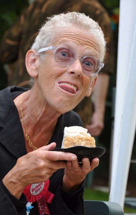 Gelukkig gaat je goed met je pols. Grappig dat muis overheen doet. Dan zie ik jou in gebakje happen. Heel erg leuk gedaan Gerda. Vrolijke foto! BIG SMILE! Fijne dag voor jullie. Geniet ervan je gebakje. Mmm...