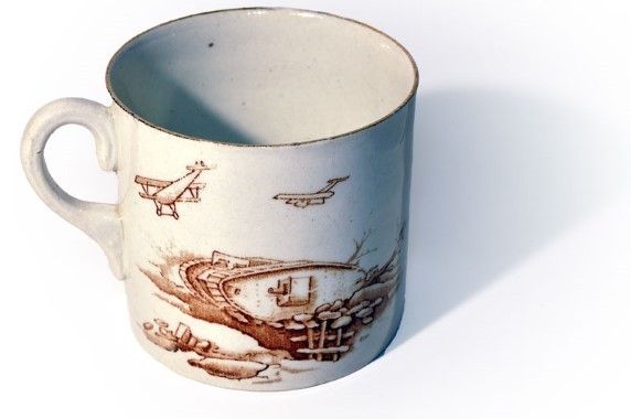 Tanks waren nog vóór het einde van de Eerste Wereldoorlog gegeerd als motief voor decoratief souvenirporselein - zgn. “china crest porcelain” dikwijls met wapenschilden van diverse Engelse steden. Ook op porseleinen vredes- of memorie-bekers (“commemorative mugs”) vooral vervaardigd in de pottenbakkerijen rond Stoke-on-Trent kwamen tankmotiefjes voor, meestal op de ‘achterzijde’. De ‘voorzijde’ toonde opulente decoraties in de vorm van lauwerkransen ter herinnering aan het einde van de oorlog: “The Great Alliance of Nations on behalf of Liberty, Justice & Civilisation - The Triumph of Right over Might A.D 1918”, of ter ere van de Engelse militaire bevelhebbers Haig en Beatty: “For Freedom, Honour and Peace 1919”. Zij zijn tegenwoordig zeer gezocht en elk WW 1 museum dat zichzelf respecteert heeft er minstens één in zijn verzameling...