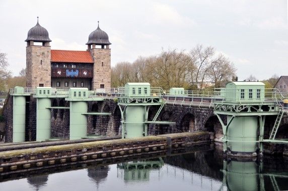 Een waarachtig keizerlijke aanblik biedt de enorme staalvakwerkconstructie die geflankeerd wordt door vier slanke zandstenen torens met elk een decoratieve kogel op de spits - dit alles wordt majesteitelijk weerspiegeld in het Dortmund-Ems-kanaal. Geen wonder dat bij de opening in 1899 Keizer Wilhelm II aanwezig was. De oude scheepslift Henrichenburg bij Waltrop dat nu een van de acht standplaatsen is van ‘das Westfälische Industriemuseum’, gold vroeger dan ook als een meesterlijke technische prestatie: in minder dan 2 ½ minuut tijd overwonnen hier tot 8000 ton zware transportschepen het hoogteverschil van circa 14 meter tot de volgende stuw.