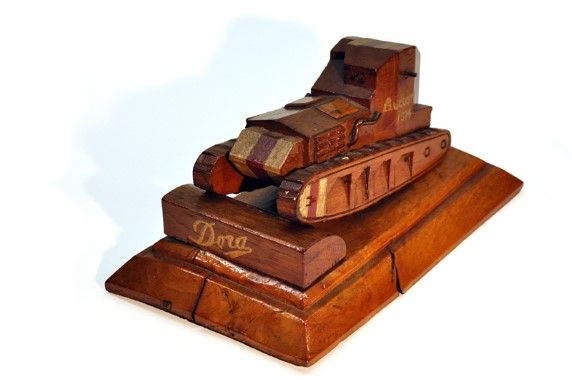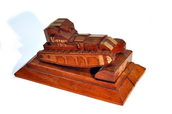 Eén der mooiste memorabilia uit Leflamand's verzameling - nu niet eens uit koper of blik maar uit hout geknutseld... een Engelse zgn. ”Whippet” bevoorradingstank genoemd “Dora” - van een type dat slechts in gering aantallen is ingezet op het einde van de Eerste Wereldoorlog...